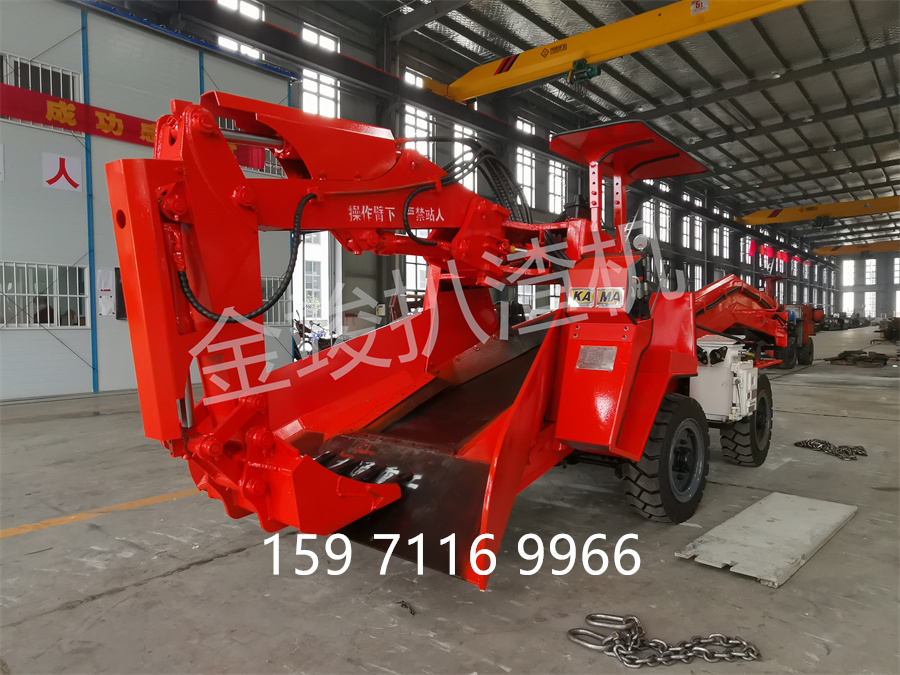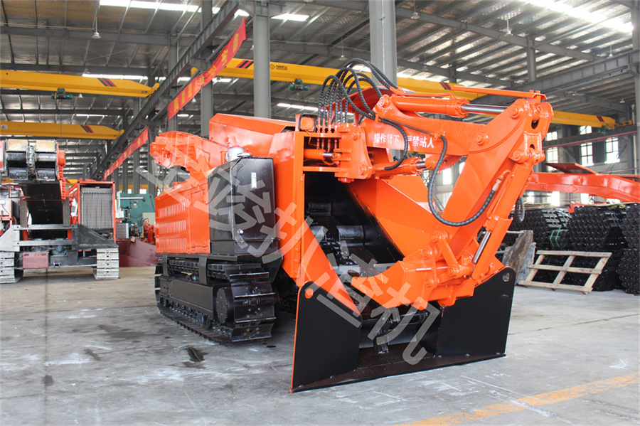 2、ZWY-80轮式皮带破碎锤扒渣机,爬行坡度较小(≦5度),液压破碎锤冲击力大,可适用在有大量大块岩石的平巷、矿山井下、引水洞、隧道工程。
