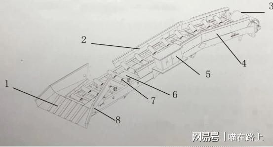 矿用挖掘式装载机的输送部分尤为重要,皮带输送系统是由铲口、输送架、输送带、电动(液压)滚筒、从动滚筒、托辊、升降油缸等部分组成。挖掘式装载机(扒渣机)输送系统采用皮带式、料斗式、刮板式输送,它通过销轴和升降油缸与底盘联接。